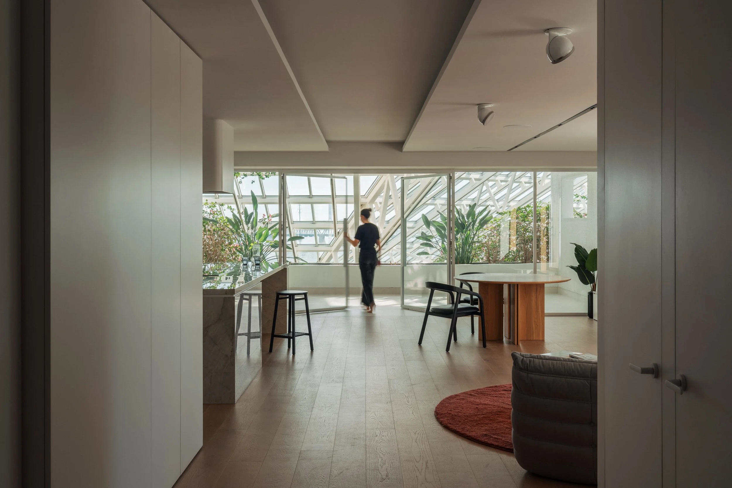 Au cœur de Tropiques Nord, l’appartement 903 se redéfinit par un jeu de volumes, de lumière et de matières. Un intérieur sur mesure, à la fois fluide et affirmé, ancré dans son contexte montréalais.